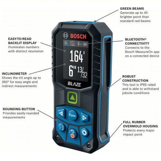 Measure distances with precision and confidence using the Bosch GLM165-25G Laser Distance Meter. Designed for indoor and outdoor applications, this professional tool combines a bright green laser for enhanced visibility with ±0.0625 in accuracy and a durable rubber housing for reliable performance in any work environment. Laser Distance Meter Specifications...