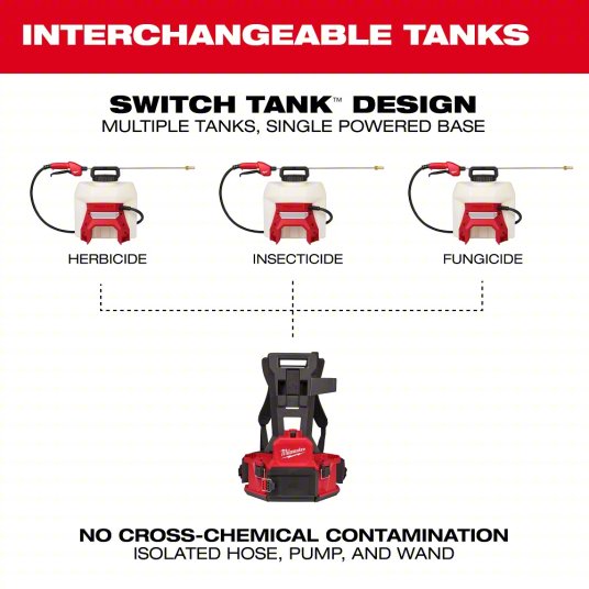 Spray fertilizers, herbicides, pesticides, and more with precision using the MILWAUKEE M18 Backpack Sprayer. With a 4-gallon tank, 140 psi max pressure, and mix-on-exit technology, this battery-powered sprayer ensures efficient coverage for lawn, garden, and agricultural applications.