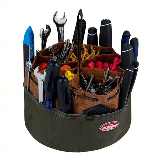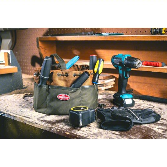 Organize and carry tools efficiently with the BUCKET BOSSS DIY Bucket Bag, featuring 19 reinforced ripstop pockets and a durable canvas construction. Its drawstring closure keeps tools secure while the stackable design maximizes storage space.