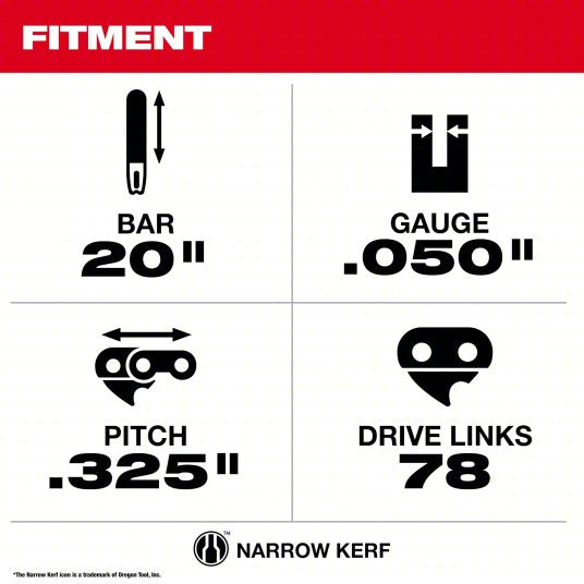 The MILWAUKEE 20-inch Chainsaw Chain is engineered for smooth, efficient cutting, with a 0.325-inch pitch and 0.05-inch gauge providing reliable performance. Its 78 durable links and 3/16-inch file size make it a versatile and dependable replacement for MILWAUKEE chainsaws, suitable for both homeowners and professional users.