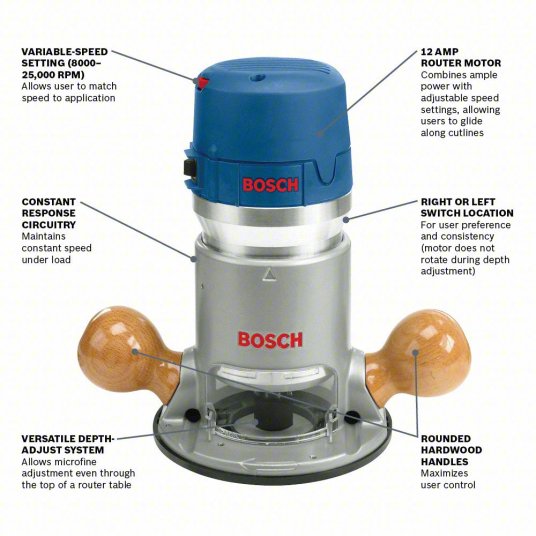 This router delivers powerful 2.25 hp performance with variable speed control from 8,000 to 25,000 RPM, allowing precise adjustment for different materials and applications. The soft-start motor ensures smooth, controlled operation without torque shock, while the double-grip handle provides stability and comfort during extended use. Its 1/2 in collet accommodates larger bits for heavy-duty routing, making it a reliable choice for professional woodworkers and serious DIY enthusiasts seeking precision, power, and durability.